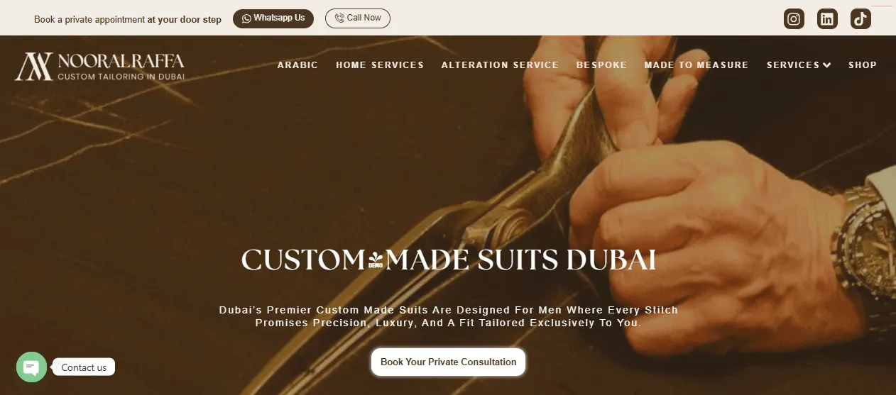 Following the launch and the implementation of our targeted SEO strategy, Noor Al Raffa experienced a significant boost in local inquiries. Their website began ranking on the first page for several critical search terms, including “Best Bespoke Tailors in Dubai” and “Custom Suits Al Barsha.” This digital transformation allowed them to compete effectively with established fashion houses by highlighting their personalized service and superior digital accessibility.